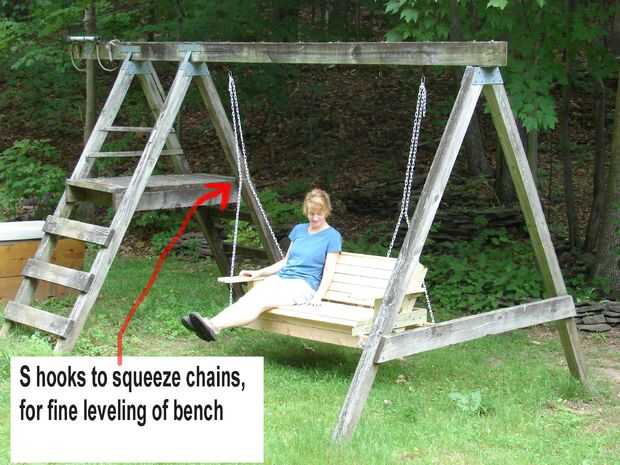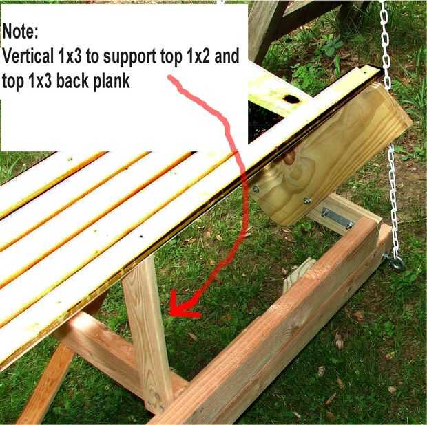 El apoyo de 2 x 4 son 54" de largo, y he podido salirse con esto como los accesorios de swing más. Aún así la cadena frota los brazos, quiero hacer estos soportes más próxima vez por lo que la cadena está totalmente libre de los brazos.