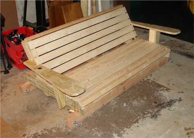 La zona de asientos es 16 x 48" y el respaldo en esta versión de 15". Si tuviera que hacerlo de nuevo, creo que plantearía el respaldo mucho más, aunque esta versión la parte superior del respaldo es una altura perfecta para codos.