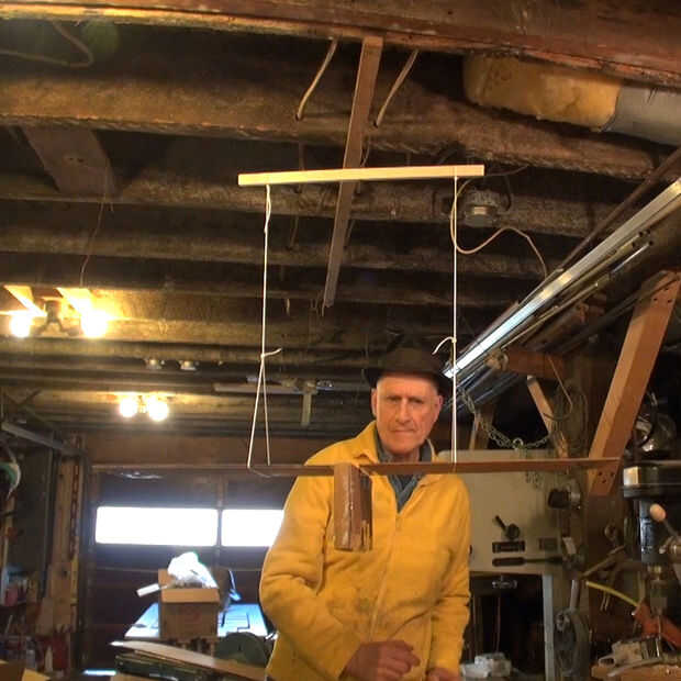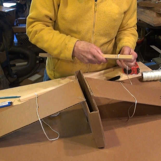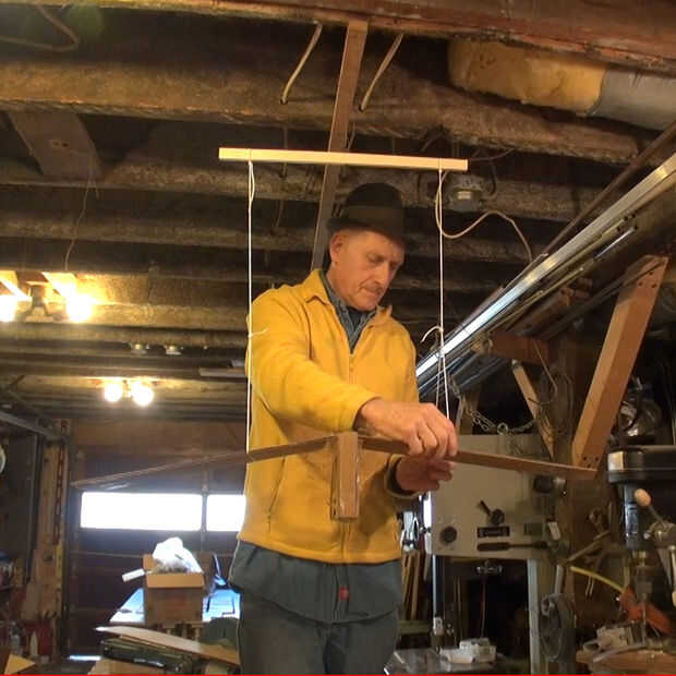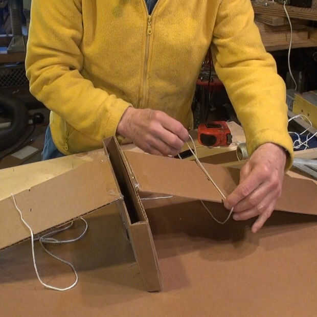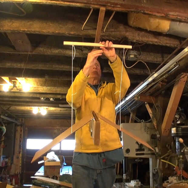 -Colgar el palo (con el pájaro en él), utilicé un alambre del lazo va a través del agujero en el centro del palo.