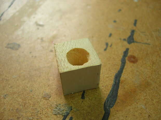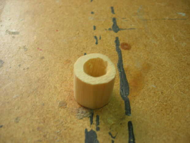 perfore un agujero en el centro del cubo , para que ello se moverá libremente cuando se deslizó en el mástil (igual que el otro agujero del mástil que ha perforado). Se puede lijar el cubo si quieres por lo que se ve mejor, pero no es necesario.