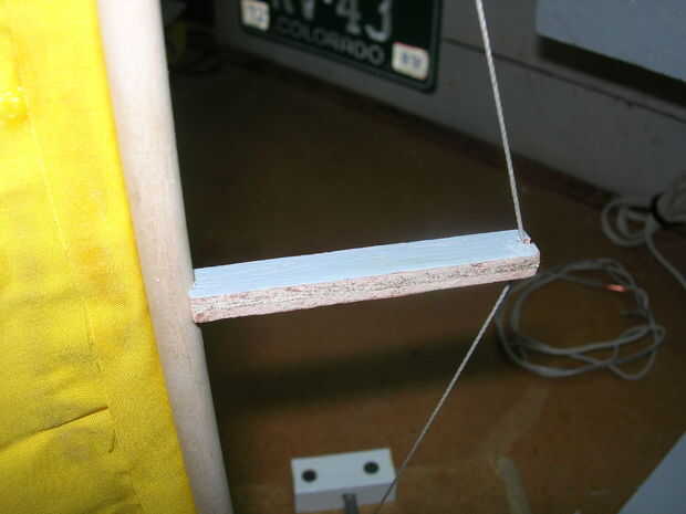 Si usted decide utilizar la cadena hacia afuera, inserte en el orificio en el brazo y en la parte superior del mástil. Atar los extremos para mantenerlo en su lugar.