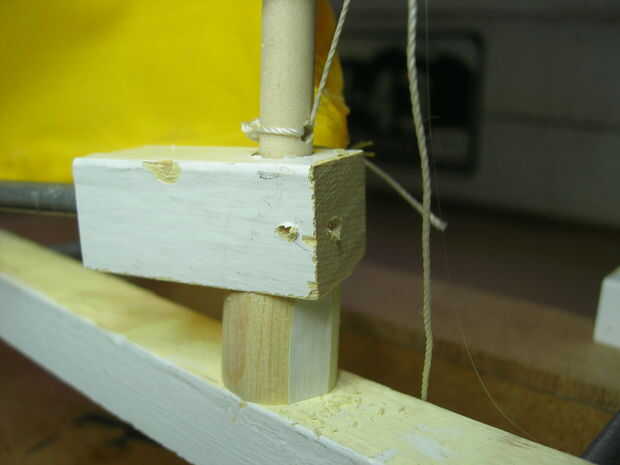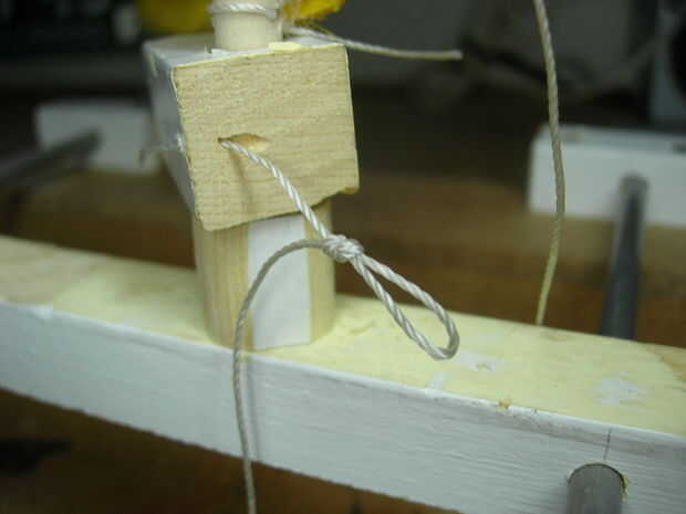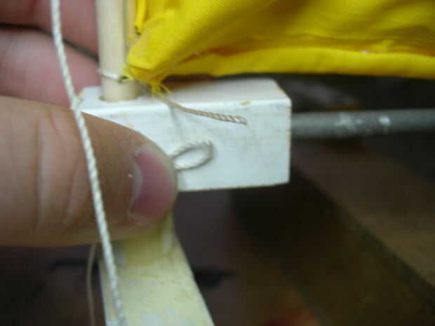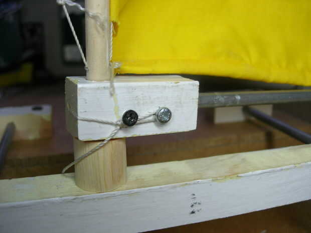 Dependiendo de la cantidad de viento, quieres tener la cadena auge en diversas tensiones. Un viento más y más flojo para menos viento. Perfore un agujero en el bloque de madera que une la botavara al mástil, debe estar en un ángulo de 45 grados por lo que va de un lado y sale por el otro (cuadro #1). Inserte el extremo de la cadena de auge que no está atada por el agujero que acaba de crear. Atar un lazo después de la cadena es a través del orificio. Tire de la cadena apretada y marca dónde se debe colocar un tornillo para que el lazo puede ir alrededor de él. Coloque un tornillo en que marca y en un lugar sobre 1/2 pulgada o lo más cercano al mástil. Si no quiere ajustar la tensión entonces a amarrar la cadena auge al final del auge de la.