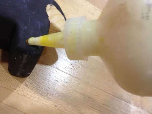 2. Coloque una pequeña cantidad de pegamento para madera en el orificio de axel.