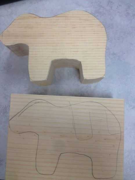 - Utilice la plantilla de papel donde han marcado su árbol para marcar en su corte de juguete en blanco.