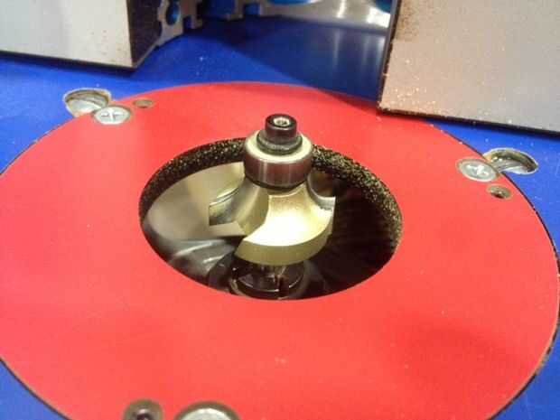 1. Coloque la ronda sobre pedacito en la mesa de fresadora y asegúrese de que el borde de la broca es nivel o ligeramente más baja que el borde de la mesa.
