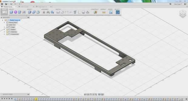 Una vez tuve un modelo exacto del dispositivo, usé el comando de shell para crear un nuevo cuerpo que se desvía del original por una pequeña fracción de una pulgada. Corte las áreas donde los botones son que deseó seguir siendo abierto y añadido algunos clips para mantener la tapa bien cerrada.