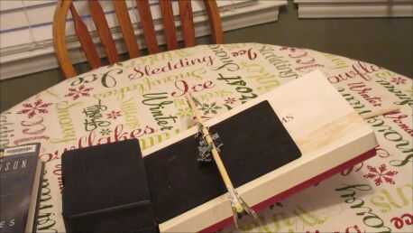 Lugar en la rampa (debe utilizar una rampa de espuma de algún tipo como un mouse pad para obtener tracción) y empuje hacia abajo en un extremo de la espiga y dejarlo ir.