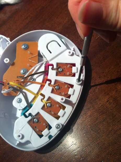 Cambie el altavoz, reinstale todos los componentes electrónicos y para arriba el juguete. Asegúrese de que todos los tornillos están en las ubicaciones correctas y estén correctamente apretados. Asegúrese de que no hay tornillos faltan/han sido comidos por el niño.