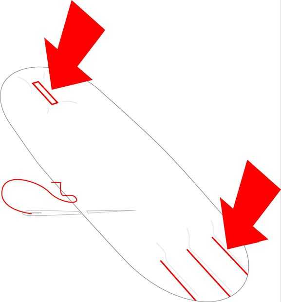 En primer lugar, coser cuidadosamente el brazo cerrado (con hilo blanco) y luego coser los dedos y el agujero de botón. Máquinas de coser más modernas tienen una función de agujero de botón. Si no entonces un agujero de botón es simplemente dos tiras de puntada alrededor de 1mm de separación con un poco más ancho de puntadas en cada extremo. Si usted no puede hacer un ojal con la máquina de coser, pintar una franja de pegamento Elmers o PVA donde desea que el ojal sea en ambos lados del material, puesto se aferran película o bolsa plástica redonda el brazo sobre el pegamento y la abrazadera hacia abajo hasta que se seque, luego cortar cuidadosamente con un cuchillo. El pegamento debe dejar el material deshilachado. Cuando esté seco, cortar un agujero de botón en el centro de la tira encolada.
