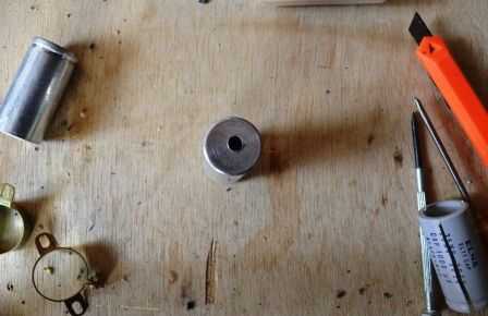 4. Perfore un agujero a través de uno de los condensadores que se utilizará como una pierna y pase los cables de los interruptores y el micrófono a través de él.
