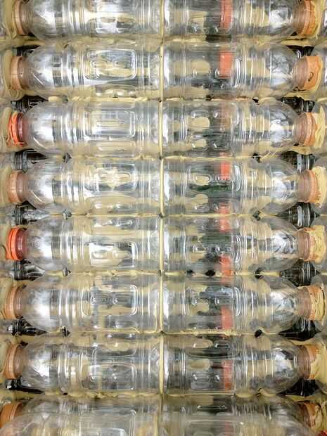 Mantener los tapones de botellas hacia el final del barco hasta llegar a la sección 6. En la sección 6, pegue la sección 7 con los tapones de botellas hacia el extremo opuesto de la embarcación. Desea que las tapas en el nuevo medio frente a la "popa" y las tapas en la parte delantera la mitad frente a la "proa". Permita que esta capa curar.