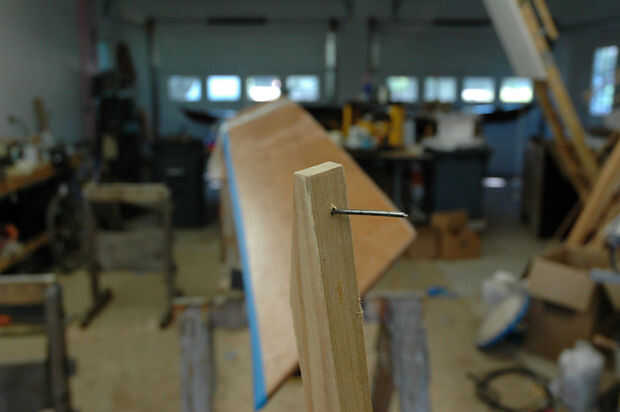 En el otro extremo de la vara, cono el extremo hacia abajo un poco entonces libra una pequeña final clavo a través de él. Inclinarse la uña para que apunte hacia abajo la longitud del palo. Luego gire el clavo al señalar a un lado.