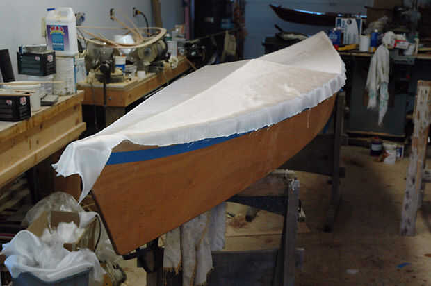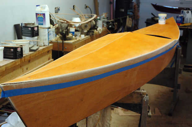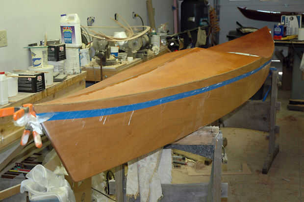 Ejecute una tira de cinta de enmascarar de 1 pulgada por debajo de la línea pura. Doblar el borde inferior ligeramente por lo que cualquier gota de epoxi no corra al lado del barco.
