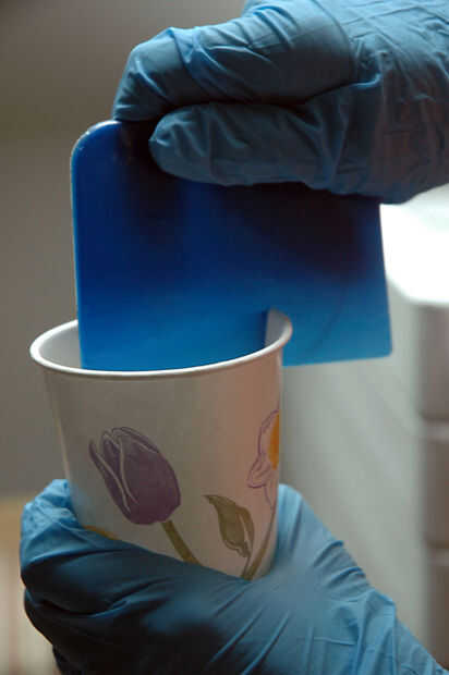 Use una taza de grunge para quitar el exceso de resina de la escobilla de goma después de raspar el vidrio. No use demasiada presión al mismo tiempo de la raspar exceso. Si no está seguro, dejarlo ser.