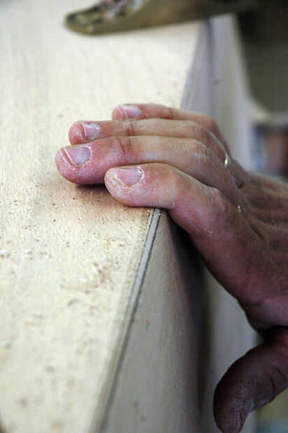 Después de realizar el chaflán de 3 lados, usar el avión para desprender las esquinas restantes. Use su mano para sentir los bordes afilados. Los dedos son muy sensibles y las irregularidades. Puso su mano sobre el borde y prestar atención a lo que sientes.