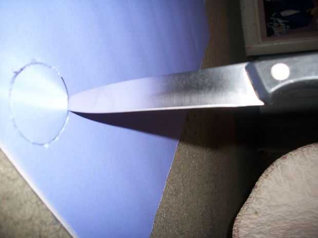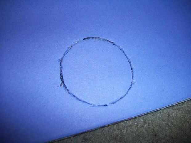Para este paso yo prefiero usar un cuchillo porque si utilizas tijeras tiende a doblar la espuma de poliestireno (para mi Junta Directiva por lo menos). Todo lo que haces cortar alrededor de la imagen que usted dibujó en el tablero (para mí el círculo). Una vez su corte tienes que llevarlo a cabo. El tablero que tengo tiene un lado del papel, luego la espuma de poliestireno, luego otra cara del papel. Si es el caso, cuando perfore la pieza los bordes se ven todo áspero y desgarrado. nos encargamos de que en el siguiente paso:).