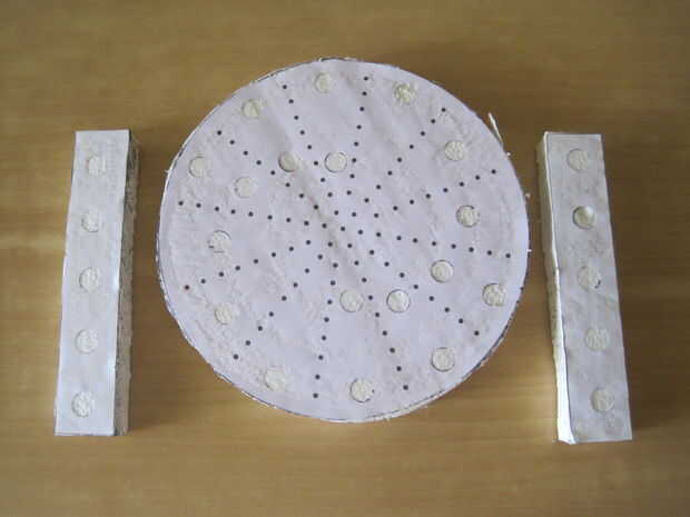 Nota: Si está pegando el papel, sería mejor si usted recortar todos los agujeros. Los mayores se pueden cortar con un cuchillo. Los más pequeños se pueden hacer por la perforación sólo un bolígrafo a través de él.