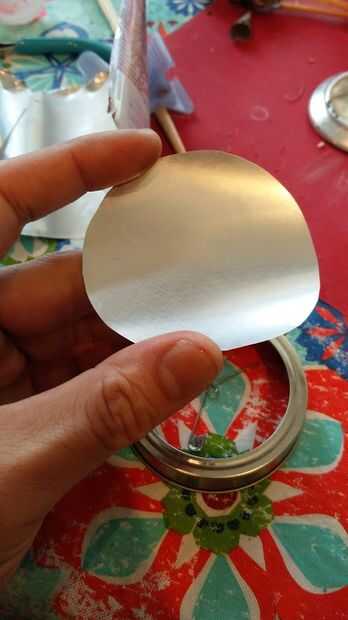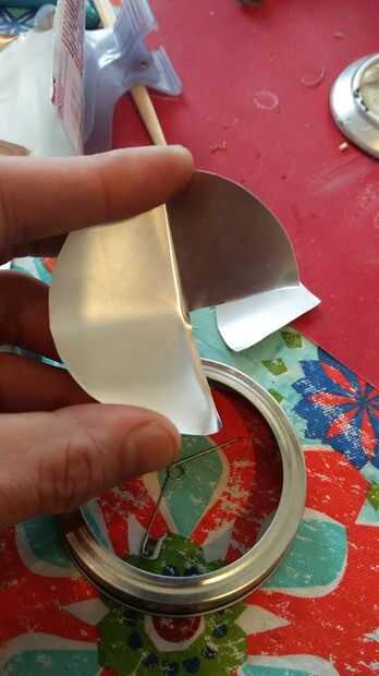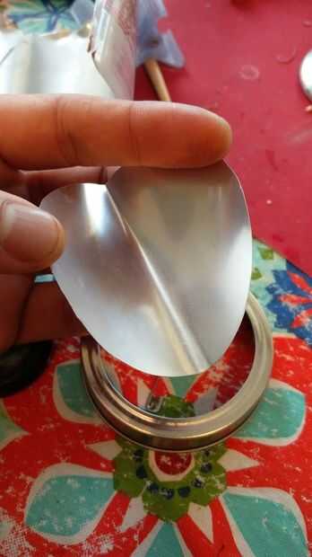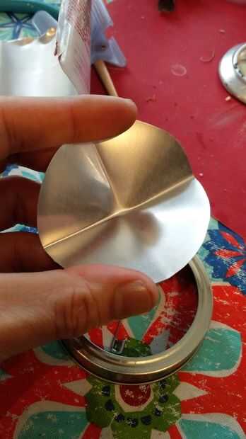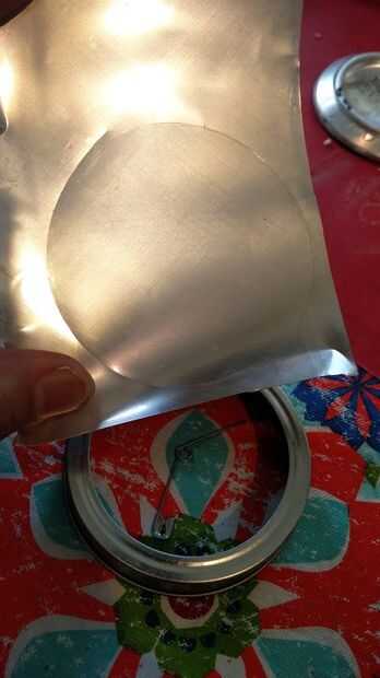 2. Ligeramente utilizando una tapa de tarro de masón y la aguja, marcar un círculo en la hoja. El diámetro es aproximadamente de 3" o 75 mm. Usted conseguirá cerca 2 embudos de cada lata.