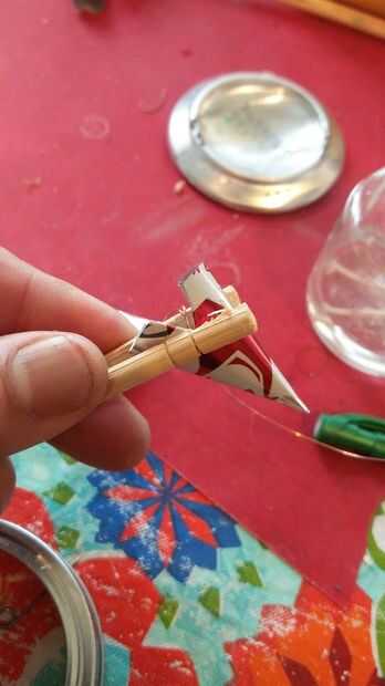 4. Coloque el embudo entre puntas y enróllela para garantizar. Apriete lo mejor pueda. Ten cuidado porque el borde del embudo es relativamente agudo.