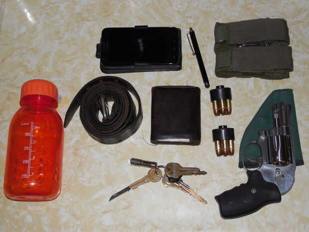 Arma de fuego y speedloaders. Tengo un empotrado llevar permiso. Láser en el arma de fuego podría ser utilizado para señalización. Dependiendo de donde usted vive esto no sería posible.