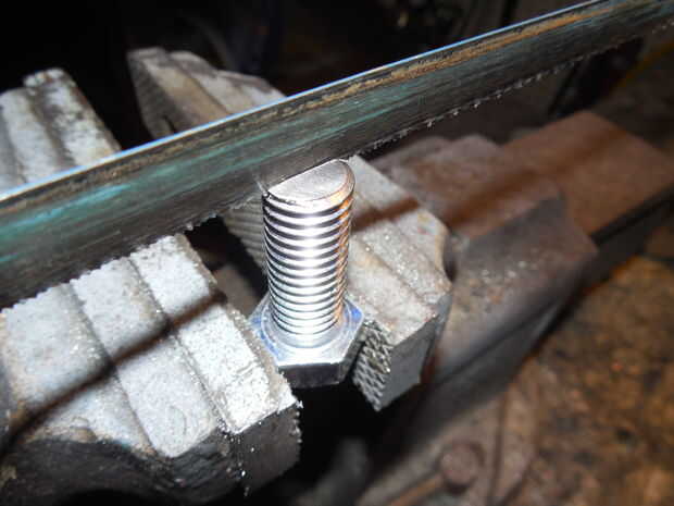 #8 cortar roscas de tres vale de material del extremo del perno. Repita los pasos 7 y 8.