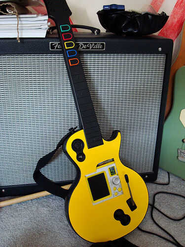 serie del Guitar Hero y Rock Band nos ha dado un montón de música, pero también nos han dado algo más... muchas guitarras de plástico en diferentes estilos, formas y colores. Después de un tiempo, mover esas guitarras alrededor de todo el tiempo se f