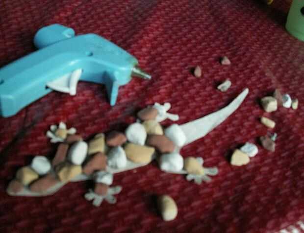 encender la pistola encoladora. pegar las rocas en cualquier patrón.