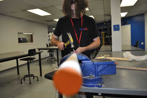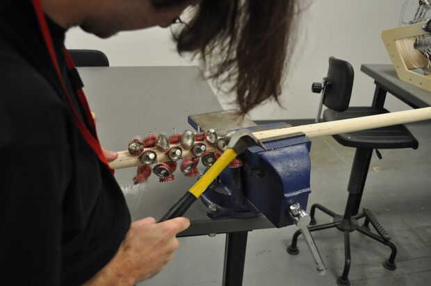 Cuando haces esto, que lo desea aún palillo hacia fuera una cantidad justa; el objetivo es dejar suficiente espacio para los tapones de botellas a sonajero, en lugar de clavarlos firmemente.