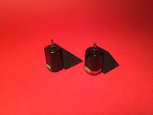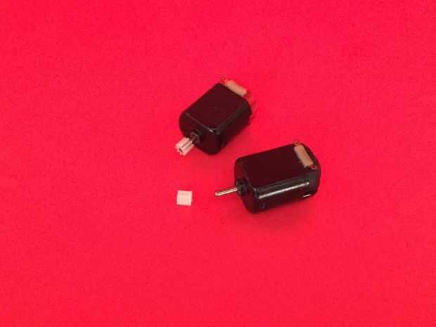 Luego sacar los engranajes de los motores y utiliza pegamento caliente para fijar los motores a los restantes (2 cm x 2, 5 cm x 2, 5cm) pedazos.