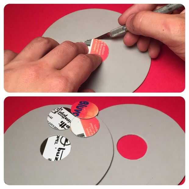 Es esta una segunda opción para los CDs. Una hoja de la espuma redonda artesanal pegada entre dos discos.