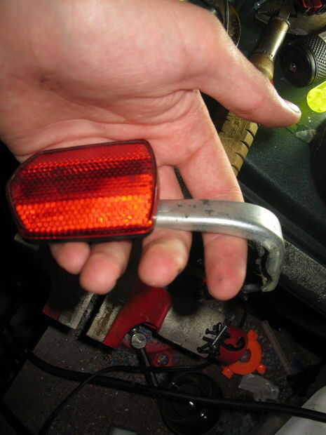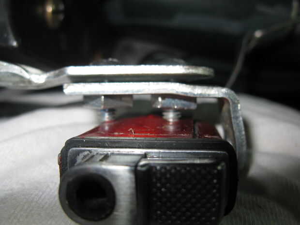 2.) apagado del reflector y encontrar otra cosa en forma de L con 2 agujeros de cada lado. Utilizando pequeños tornillos, atornille la cosa en forma de L para el soporte del reflector (donde estaba el reflector).