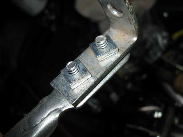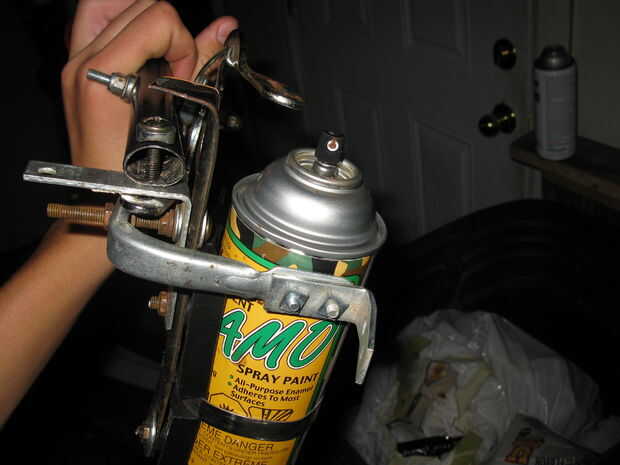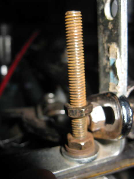 ¿4.) recuerda que el tornillo dijo que no se corte? Buena. Puso otra tuerca y apriete hasta que el tornillo de montaje de freno impidieron su progreso. Poner el soporte más ligero en el tornillo y atornille con otra tuerca.