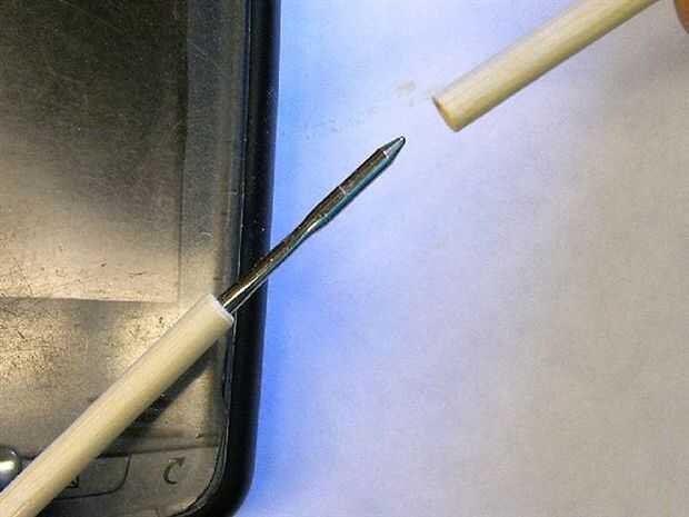 Hacer lo mismo con el extremo que sobresale de la pluma, para asegurar la tapa corta en su lugar. El prensado debe ser menos aquí, así que la tapa se desprenderá, pero todavía deja la aguja se retiró de la PDA sin la separación.