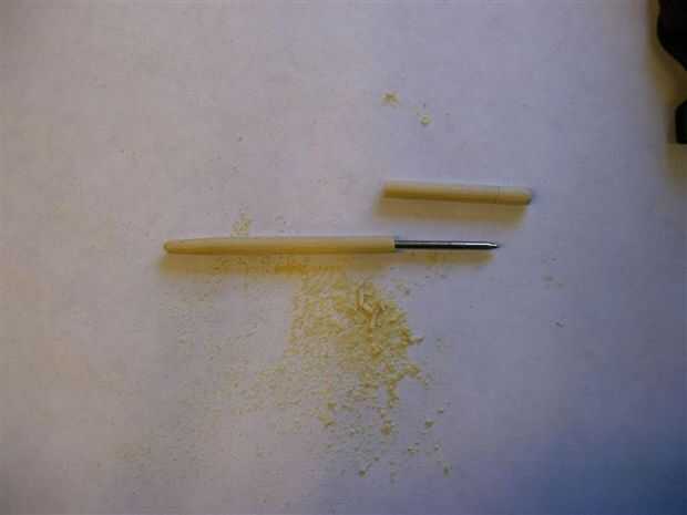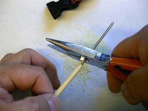 Esto debe hacerse con cuidado. Si la pluma es demasiado amplia, se agrietará la aguja, así que solo que basta con un pequeño apretón.