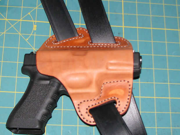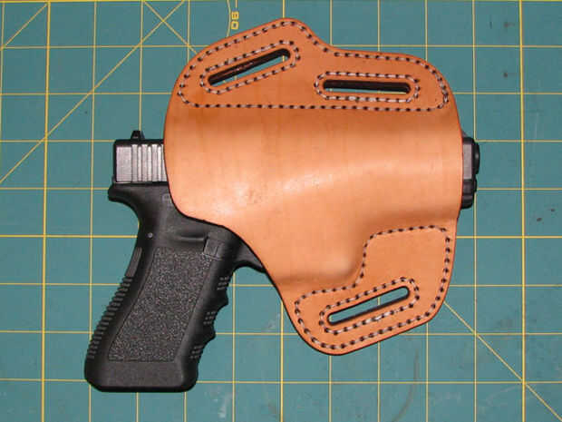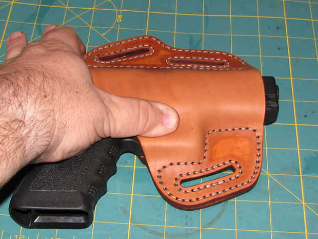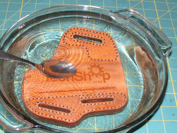 Prueba de ajuste de su pistola en la funda y tener una idea de hasta qué punto en la funda de que la pistola debe sentarse. Debe ser bastante flojo en esta etapa. Va endurecer mientras trabaja.