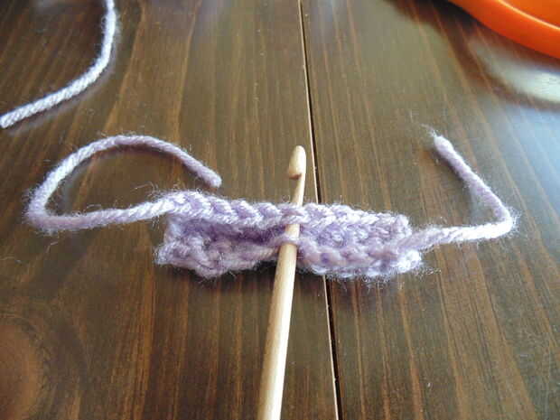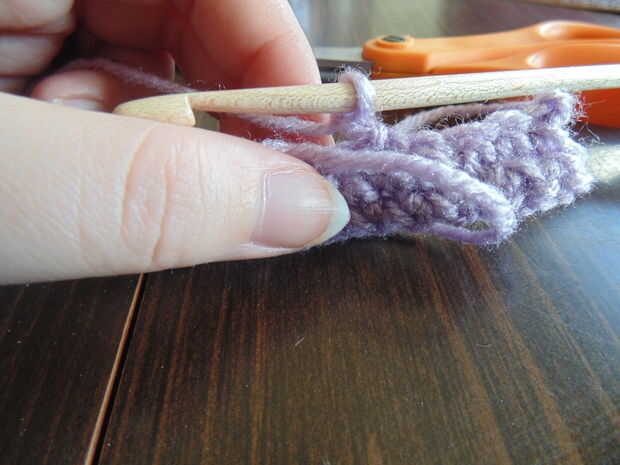 Inserte el gancho en ch 5 en la parte inferior y 5 en la parte superior de la puntada.