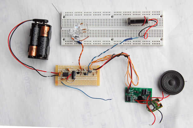 Cortó el micrófono y había conectado los cables a la toma de salida de sonido de mi ordenador. Pulsando el botón de grabar en el módulo y el botón de play en el equipo al mismo tiempo, pude cargar el sonido en el módulo.