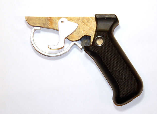 La empuñadura es de un SMG esterlina real. Hay copias de resina de la empuñadura que hay, pero encontré que los reales eran más baratos, y no rompen cuando se les caen.
