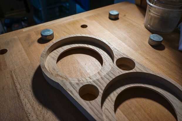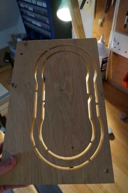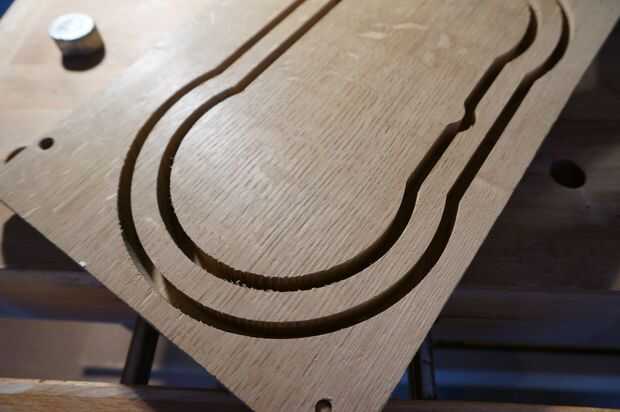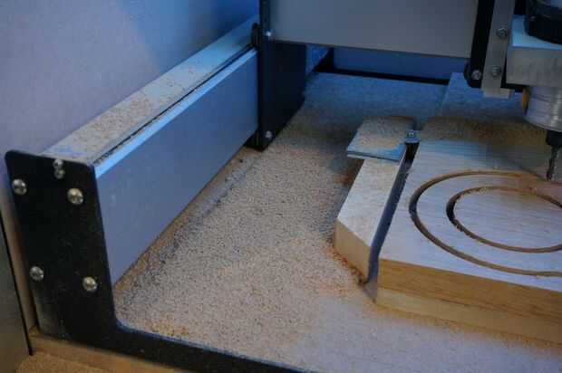 El mecanizado llevó la mejor parte de 4 horas para todas las piezas así no mal. El roble fue atornillado justo hasta la Junta de residuos de mi máquina mientras que con el policarbonato utiliza una tabla de sacrificio limpio que era doble cara con cinta hacia abajo ya que es difícil sostener el polycarb abajo de otra manera.