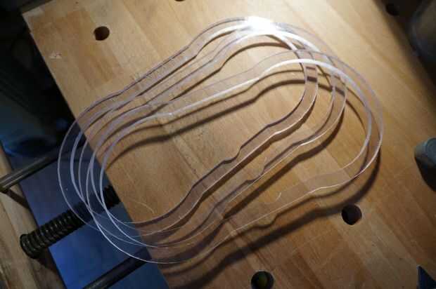 Yo pude realmente se han beneficiado usando un cortador del laser para el anillo de policarbonato como un láser deja un borde mucho más limpia y habría reducido el tiempo que pasé en el borde de acabado. Me parece que los láseres son quizás un poco más preciso y mucho más limpio. No hay fichas para aspirar! Pero por desgracia no tengo uno en el momento!