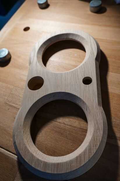 Luego pude probar el cuerpo que hacen que la caja para ver qué tan bien alinean los anillos de ajuste. Afortunadamente perfectamente alineado debido a mi uso de CNC. Yo planeaba usar pegamento cycanoacrylate para unir todo pero he probado con algunos de los recortes de roble y no sostenga bien a la madera porosa. Epoxi es el pegamento que se asentaron en como puede pegar casi cualquier cosa muy fuertemente, tenía que trabajar rápidamente para pegar todo junto como yo sólo tenía 5 min epoxi. Luego utilicé una botella de 5 litros para sujetarlos juntos.