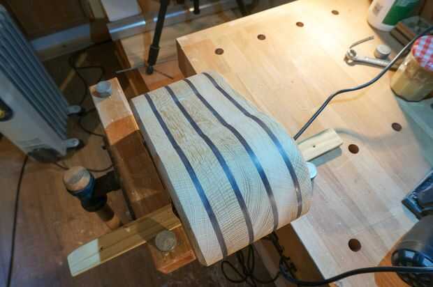 Como se puede ver en las fotos, puso la superficie a un agradable acabado liso que estaba listo para recibir una capa de sellador para evitar cualquier cosa que no deforme que podía porque el policarbonato pegado al roble restringe su movimiento.