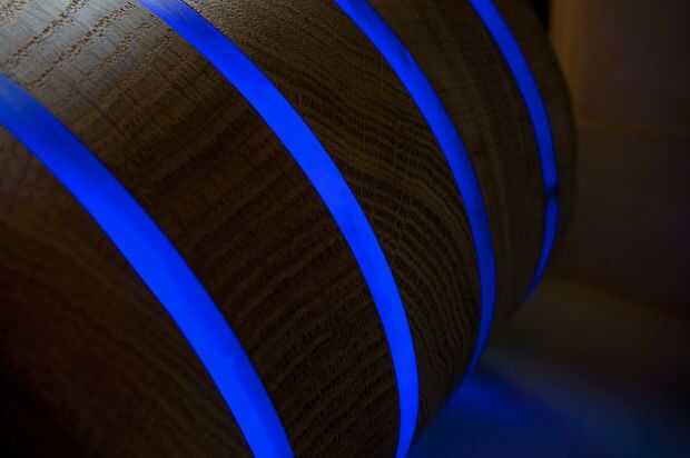 Terminó muy bonito en mi opinión, uno de los proyectos buscando más bonitos que he hecho! El fresco brillo de los LEDs azul le da una imagen fresca que contrasta el contrahilo de roble rústico pero elegante.
