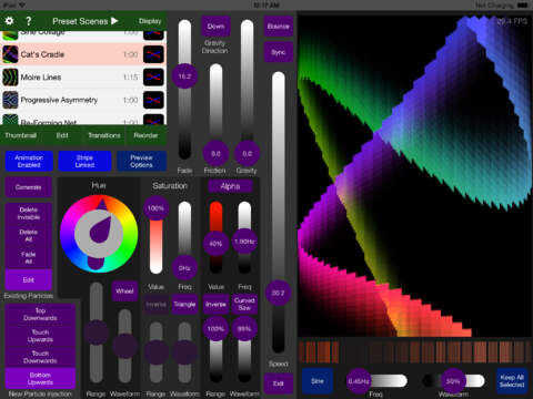 Una vez dentro LED laboratorio, necesita saber el software cómo todas sus tiras están dispuestos, y parece de la configuración del controlador. En menú principal -> configuración, pixelpushers en la misma red WiFi como tu iPad se mostrará automáticamente. Además, encuesta el archivo pixel.rc para determinar cuántas salidas activas se utilizan. El trazado restante se controla mediante los botones del panel en la parte inferior de la pantalla. Dead simple. Super increíble trabajo aquí.