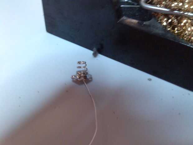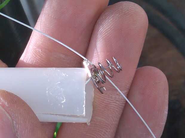 Después de soldar un cable a la spyral, ajuste el spyral en el tubo del extremo que no tiene el tubo más pequeño en él. Al insertar el spyral, tenga cuidado que se hacia en tierra de la batería será una vez que las pilas están puestas. Al insertar el spyral, enviar el cable a la que se se suelda hacia abajo a través de los dos tubos y por lo que se puede soldar un LED más adelante. Haga el positivo del interruptor hacia abajo el tubo y hacia fuera por lo que también se puede soldar a un LED. Spyral en la pieza más corta del tubo del asiento y empuje la batería en el tubo más grande desde el otro extremo y la batería mantenga el spyral. Poner un corte hacia abajo de 1 pulgada de la tubería de la parte superior como en la imagen para ayudar a apretar las pilas.