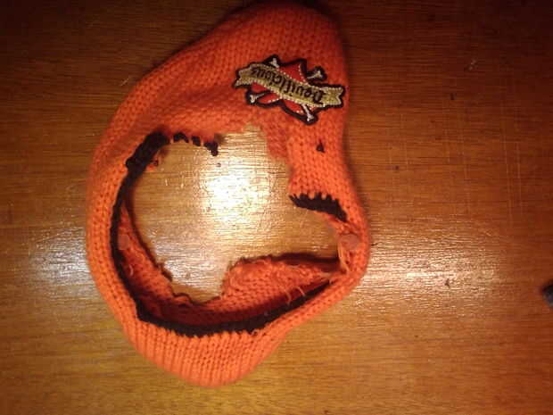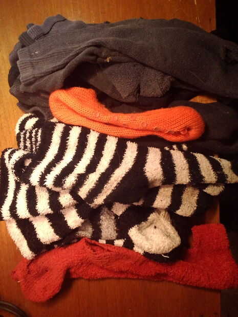Necesitamos un bucle que es más grande que la cabeza y el cuello de su mascota por lo que no hay demasiado apretado cuando nos lazo un montón de otros calcetines alrededor de él. Usé un calcetín de footie con un gran agujero en la parte inferior de la misma. Ampliado el agujero un poco hasta que ya era lo suficientemente grande como para pasar la cabeza de mono con sobra.