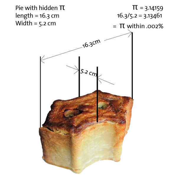 Después de hornear el pastel #1, estaba mirando el sizeof proporcional la longitud del pie ancho, y miraba por el ojo de serlo aproximadamente tres a uno - muy cerca de pi sí mismo parecía. Así, por capricho, me lo mide