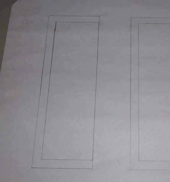 Para el rectángulo más pequeño sólo agregue 1/2 en los dos lados cortos y uno largo. dejando a un lado largo sin cambios que se verá como la foto 2 cuando haya terminado.