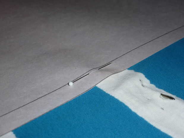 Una vez han puesto el patrón donde usted guste tomar sus pernos rectos y comience alfileres a la tela.