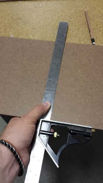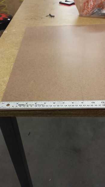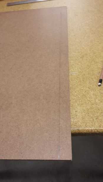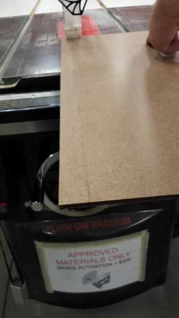 3) tome su pedazo en la Sierra de mesa (yo usé la sierra panel porque la Sierra de mesa estaba en uso, esto es potencialmente menos preciso pero tengo un gran corte)